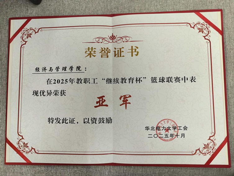 9月23日至10月24日中午,为庆祝新中国成立76华诞,丰富教职工业余文化生活,加强交流合作,助力全民健身,我校在体育馆举办了2025年“继续教育杯”教职工篮球联赛。经济与管理学院凭借出色的团队配合、顽强的拼搏精神和稳定的赛场发挥,历经多轮激烈角逐,荣获联赛亚军。