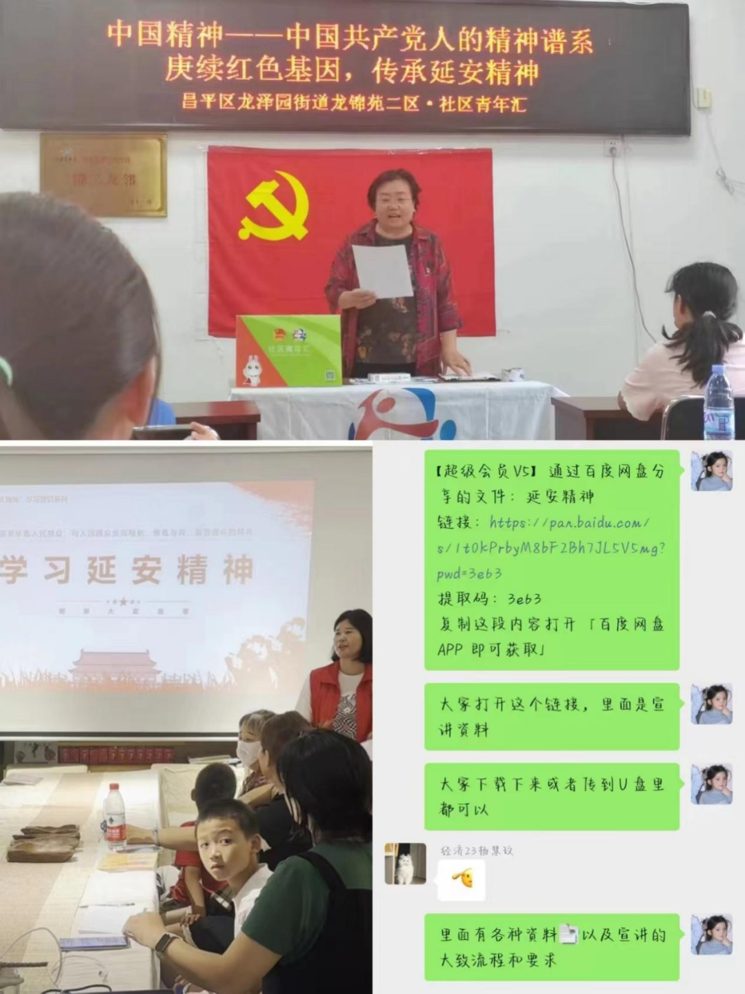 二是拓宽宣讲渠道,以社区宣讲为辅助平台。在2024年7月份,华北电力大学经济与管理学院“百年正青春志愿”服务队联合多个社区通过讲故事、交流沙龙、线上录制等线上线下相结合的方式进行延安精神的宣讲活动。