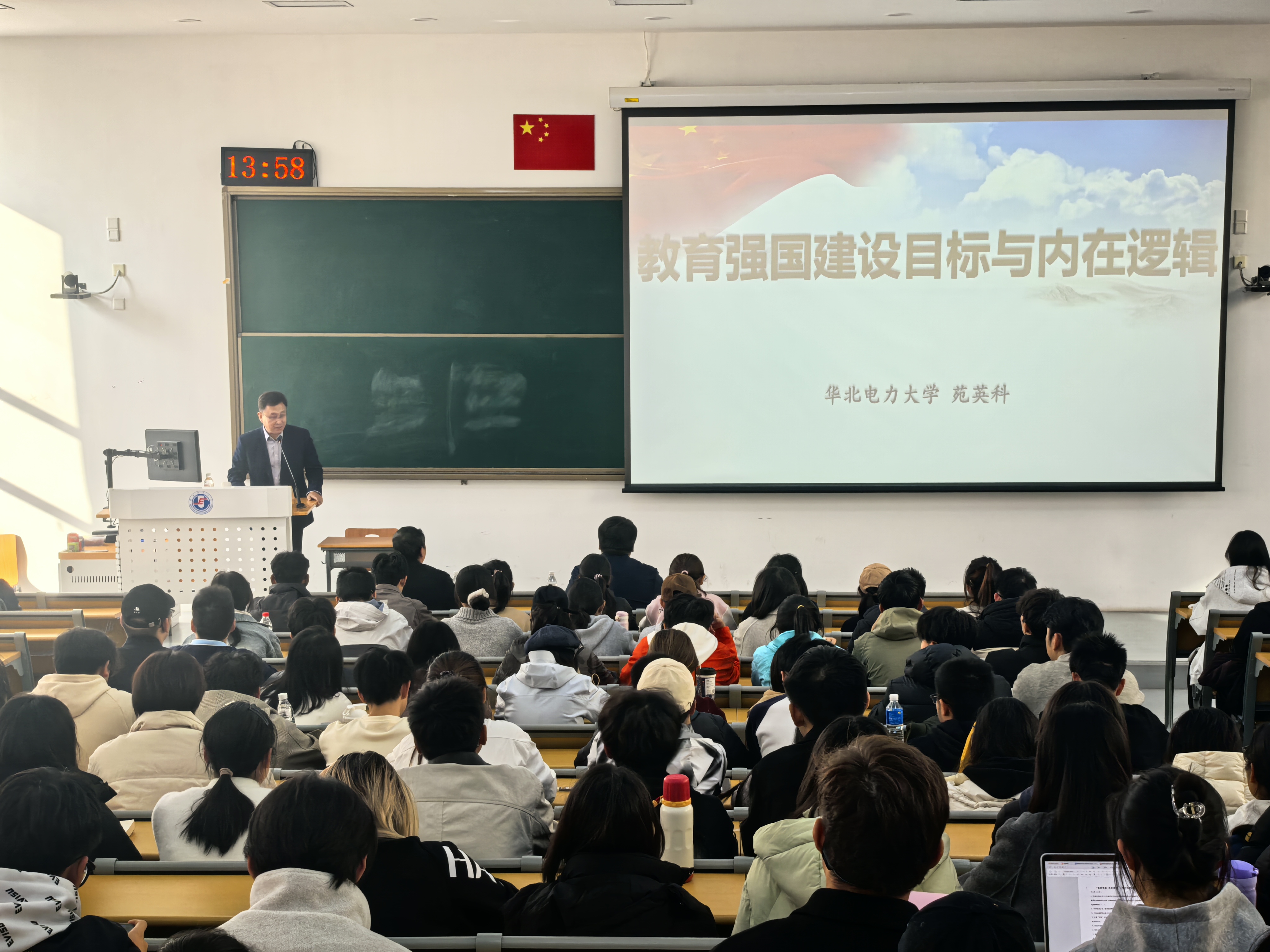 苑英科系统阐述了教育强国建设的战略规划、四大逻辑与核心框架。从历史逻辑、现实逻辑、人口逻辑、改革逻辑出发,回顾世界科学中心转移历程,强调大学对于国家创新发展和综合国力提升的重大作用,分析科技革命与人口结构变化对教育提出的新要求,指出教育已成为国家实力的关键组成部分,并进一步解读了教育强国建设核心框架的“六大特质”与“八大体系”,介绍了《教育强国建设规划纲要(2024—2035年)》“两步走”战略,引导学生深刻认识教育在民族复兴中的基础作用。